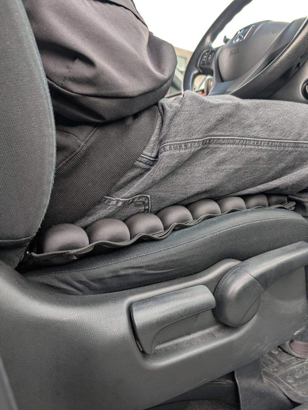 車のシートにおいてみたんだけど、硬すぎず柔らかすぎない絶 妙な弾力で、長時間の運転もちょっと快適に