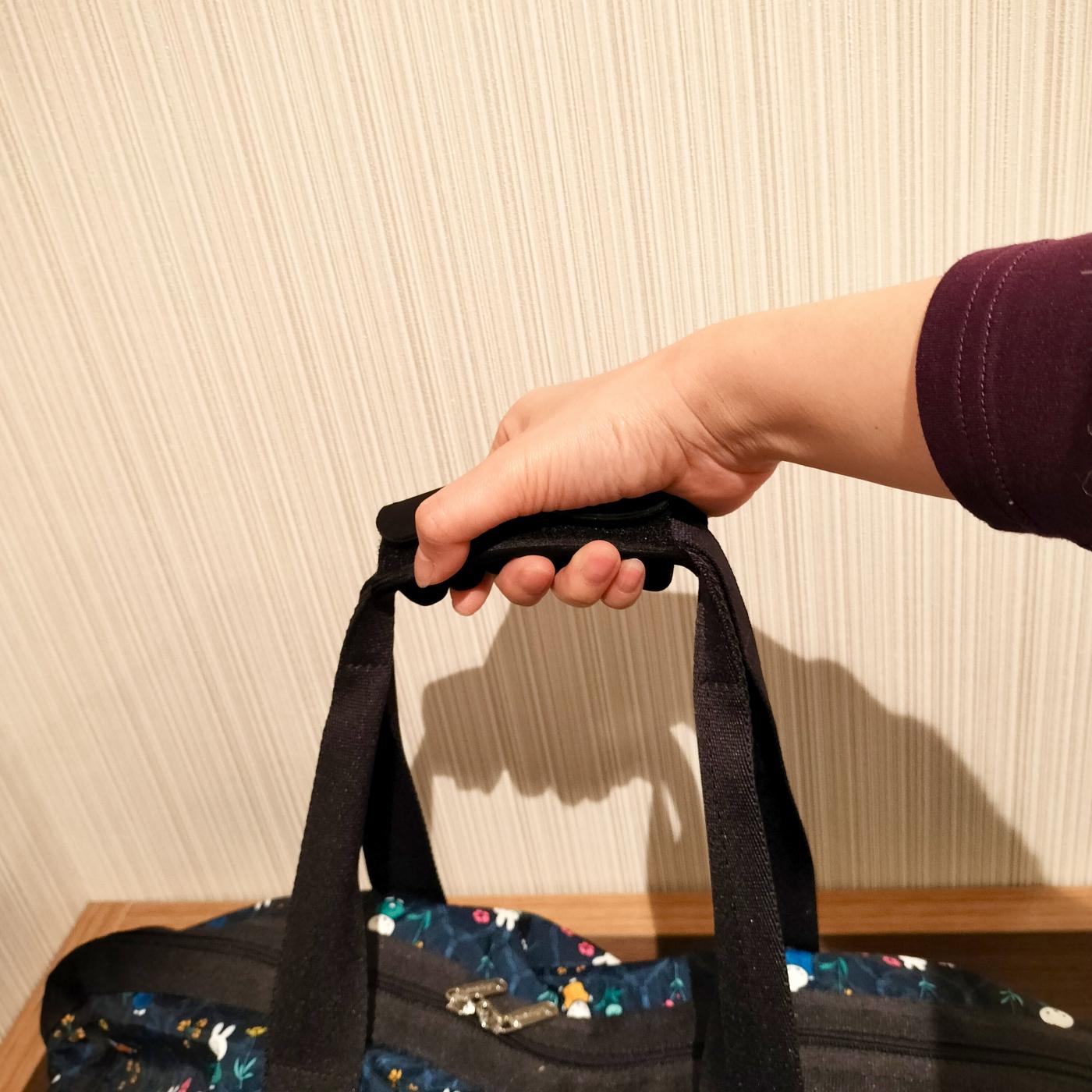 先日、1泊するのにボストンバッグを使用したので持ち手に巻いて使ってみました。
