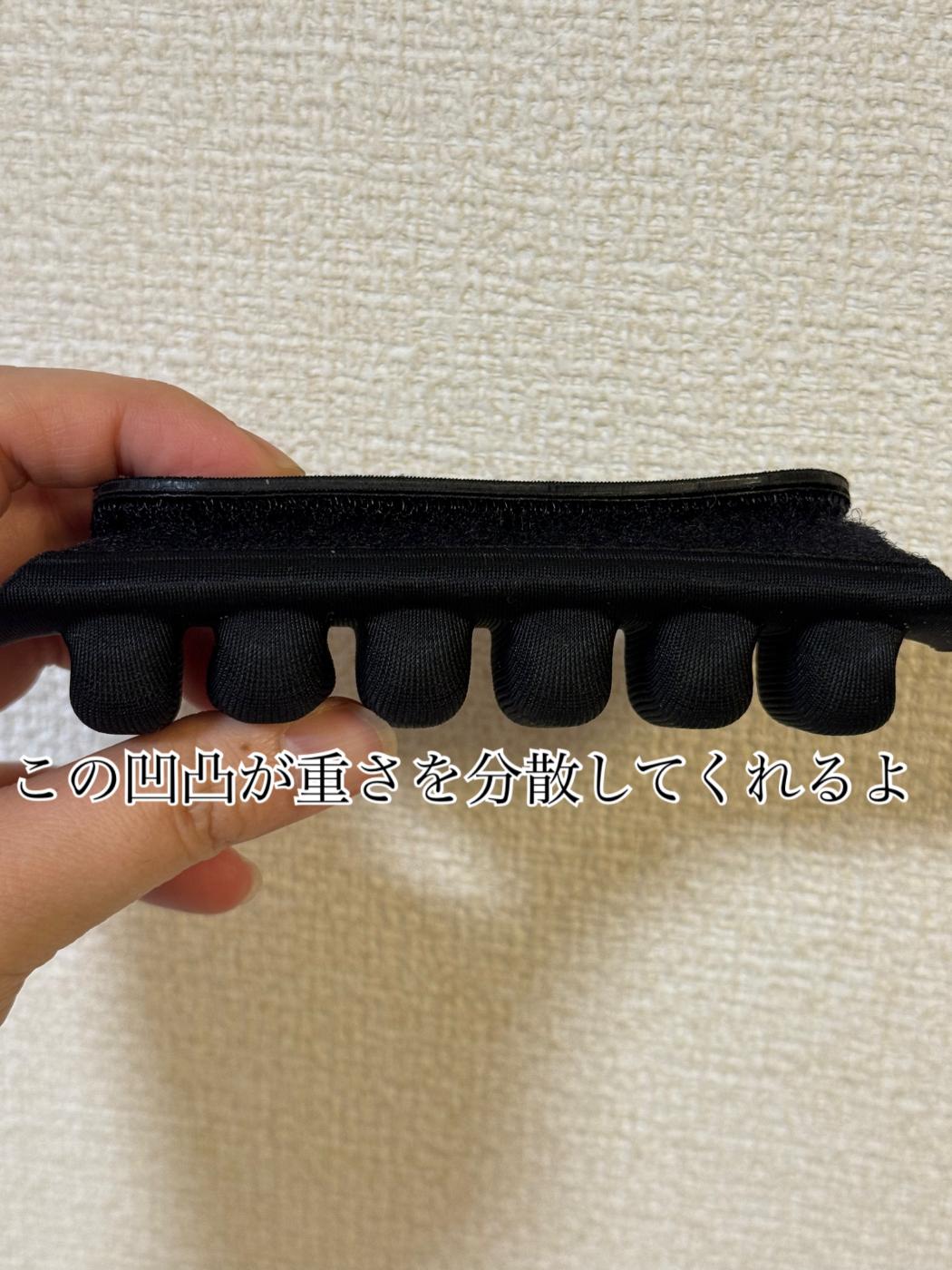 この凹凸で手にビニールが食い込むことがなくて重さを分散、減圧してくれるから助かる!