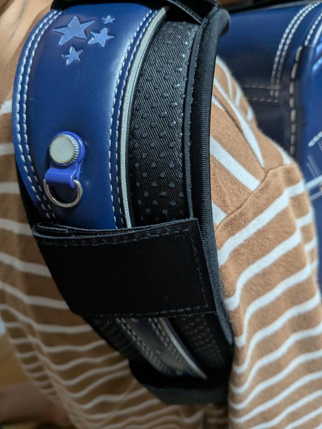 子供が実際に使ってみた感想としては、ベルトの幅が8.5cmで、ランドセルのベルトの幅よりも広いから、ちょっと慣れるまでは肩に当たってしまって違和感があるみたいでした。