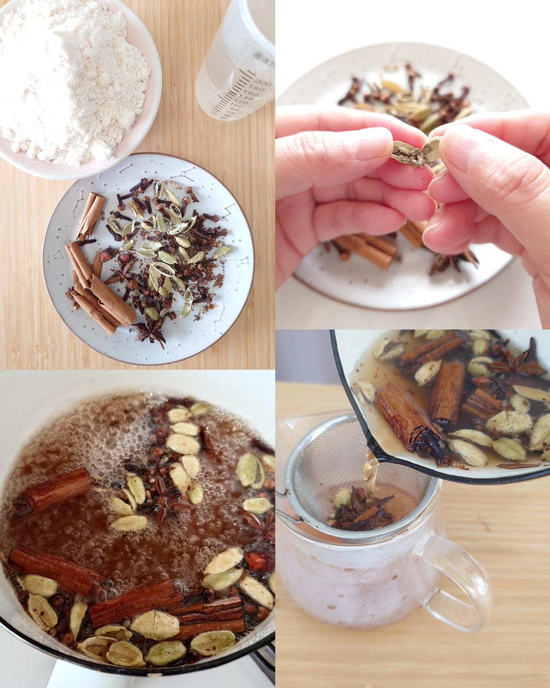 ②鍋にスパイス全量と水200ml、砂糖200gを入れる。