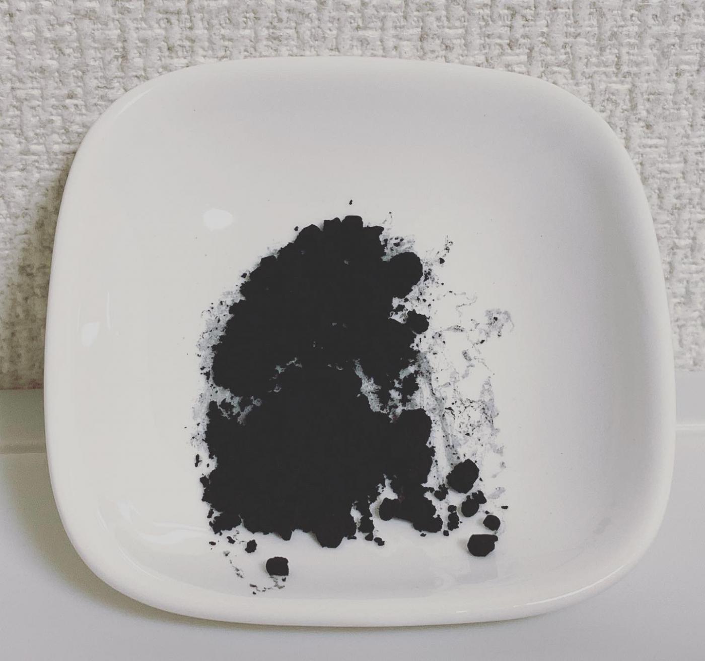もちろん炭なので驚くほどに真っ黒!黒いです。︎炭自体が