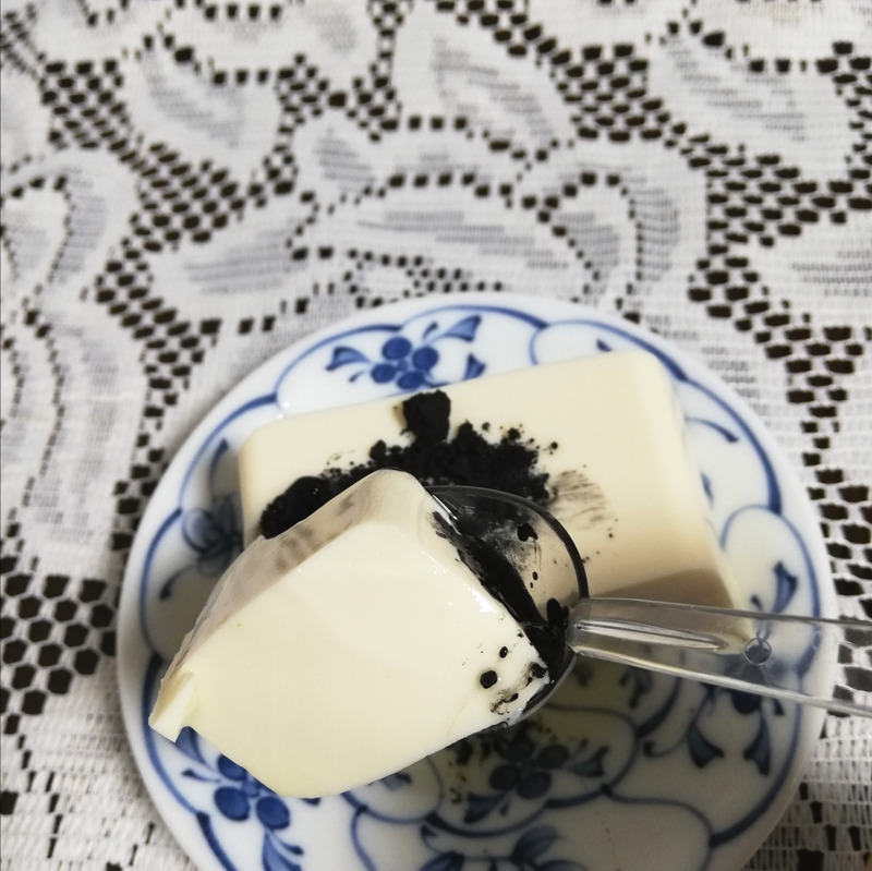 チャコールパーティクルの味や食感、そして見た目が楽しめるようにな食べ物って何があるかな?と少し考えて、思いついたのが豆腐でした。
