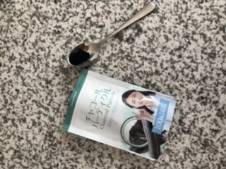 そして、チャコールパーティクルを溶かした、水は、かなり、真っ黒な液体になります!