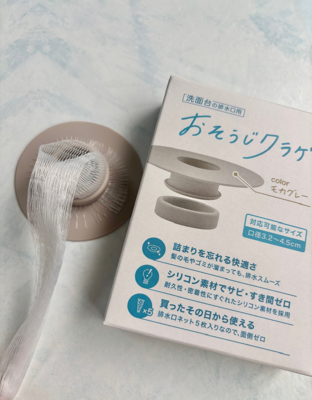 実際に使ってみると、髪の毛や小さなゴミがきちんとキャッチされ、水はスムーズに流れる感じがします。詰まりを防ぎつつ、掃除の頻度が減る気がします。
