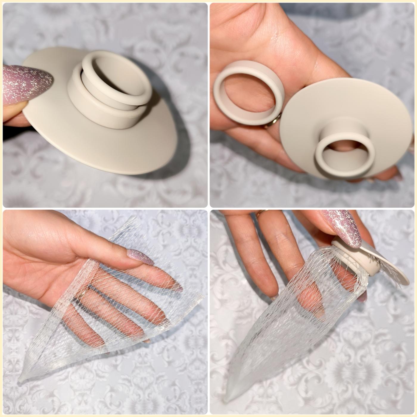 使用方法は、排水口ネットを軽く広げ、リングに通して、5㎝ほど折り返す。本体に押し込み、洗面台に設置するだけ。