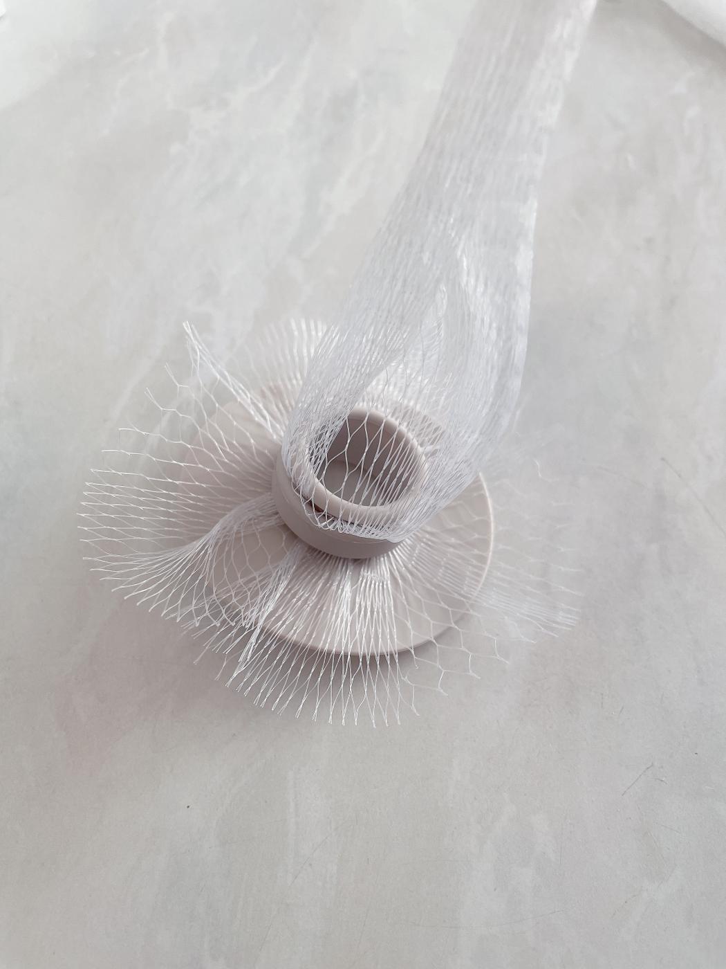 使い方は、ネットをリングに通して折り返します。そして、本体にセットします。