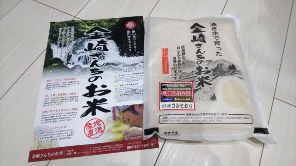 信州飯山産コシヒカリ 金崎さんちのお米1kgを頂きました(^3^)/ 全国米・食味分析コンクール金賞受賞 ...