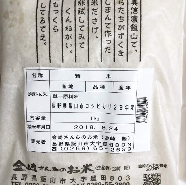 信州飯山産コシヒカリ 金崎さんちのお米1kg