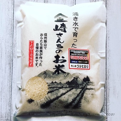 北信州飯山(長野県)の恵まれた環境で育てられたお米です。涌井清水の湧き水と雪解け水を使い、収穫間際の昼夜の気温差が大きいことからツヤと甘みのあるおいしいお米ができるのだそう。量より質を重視した農法でおいしくなるようこだわって作られたお米が今日届いたんですが、精米日はなんと昨日!業者などを通さない産地直送だから新鮮なまま届くのもうれしいですね。