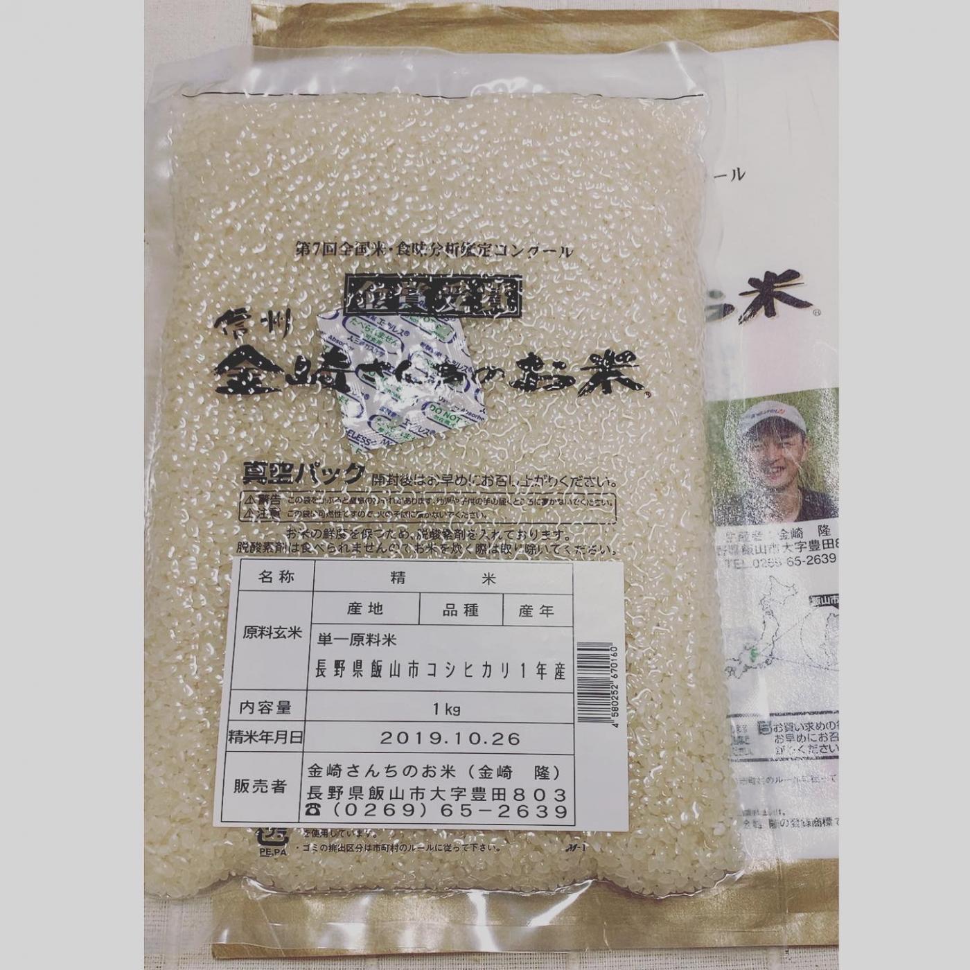 長野県飯山市コシヒカリ1年産・1kgは2019.10.26に精米されました。早速、炊いてみましたが、噛むほどに上品な甘味があり、ふっくらしていて程よい粘りが好みでした? 翌日、おにぎりにして職場に持っていきましたが冷めても美味しくいただけました。