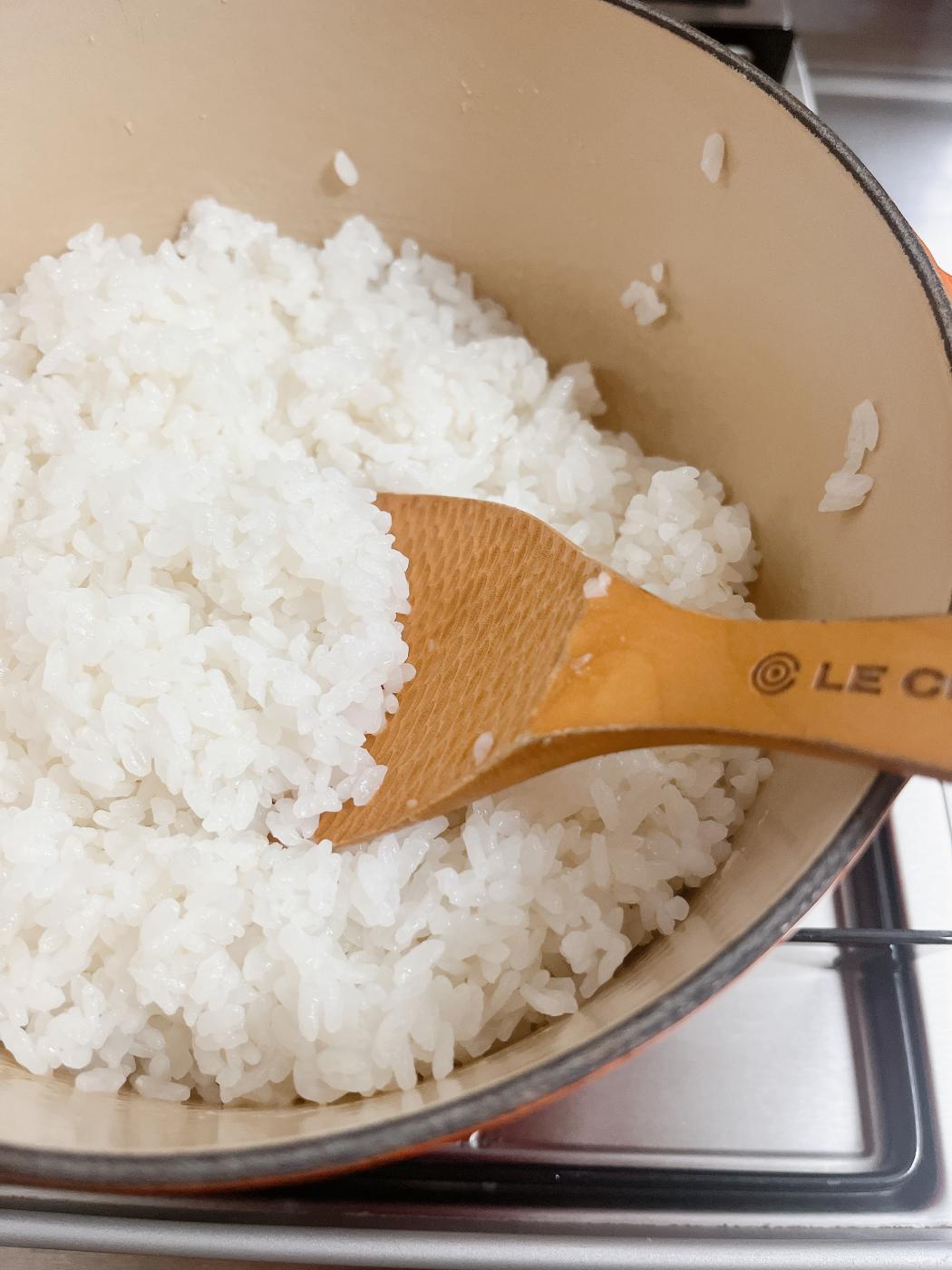 いつも通りにホーロー鍋で炊きましたが、高級炊飯器で炊いたような、とてもツヤっとした炊き上がりになりました。