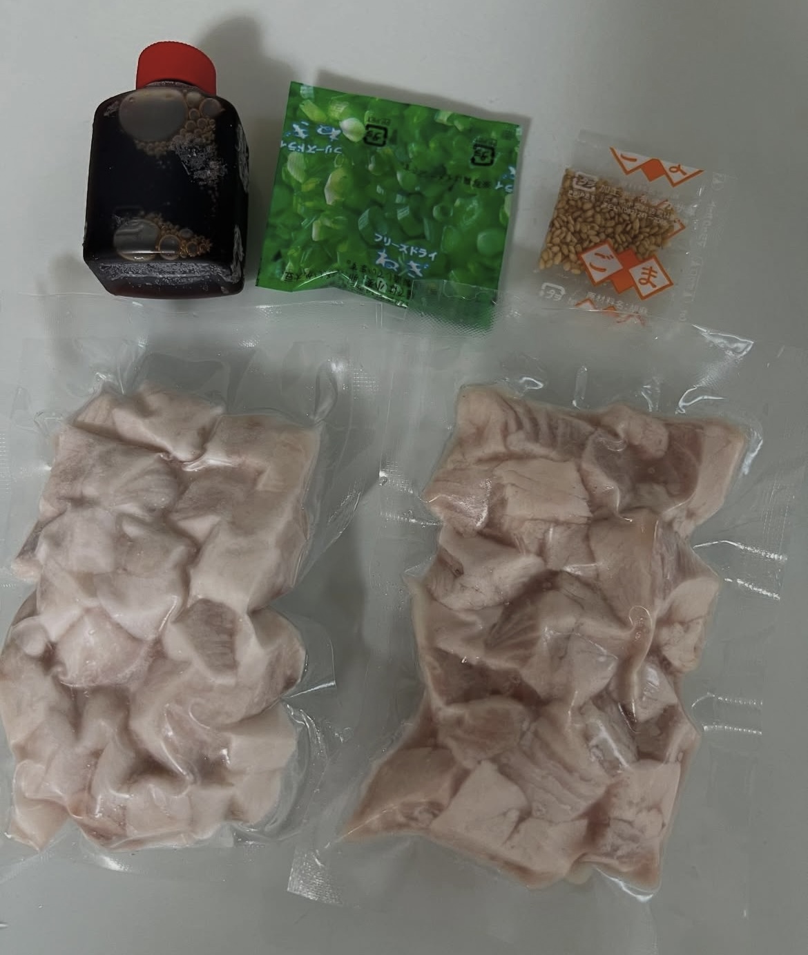 セットには魚の他特製魚醤ダレ、乾燥ネギ、ごま等がセットになっているから、ごはんを用意するだけで手軽にポキ丼を楽しめる。