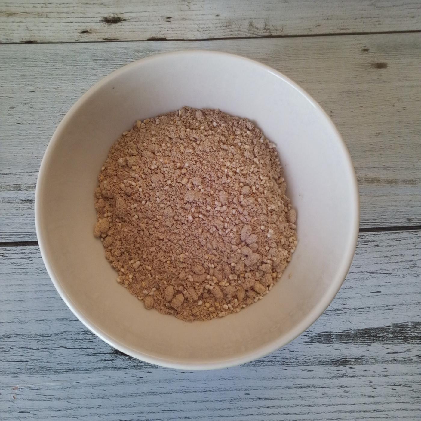 豆乳と一緒にいただきました。ぱっと見は穀物やオートミールなどを配合したような粉で、味は期待出来なさそうな感じがしました。豆乳を注ぎ結構よく混ぜました。中に色々なものが入っていて食感がいいなーと思いました。中でもお煎り?煎餅を砕いたような食感のものが美味しかったです。どんなドリンクともマッチさせらるのもいいな。と思いました。、健康のためにオススメです。