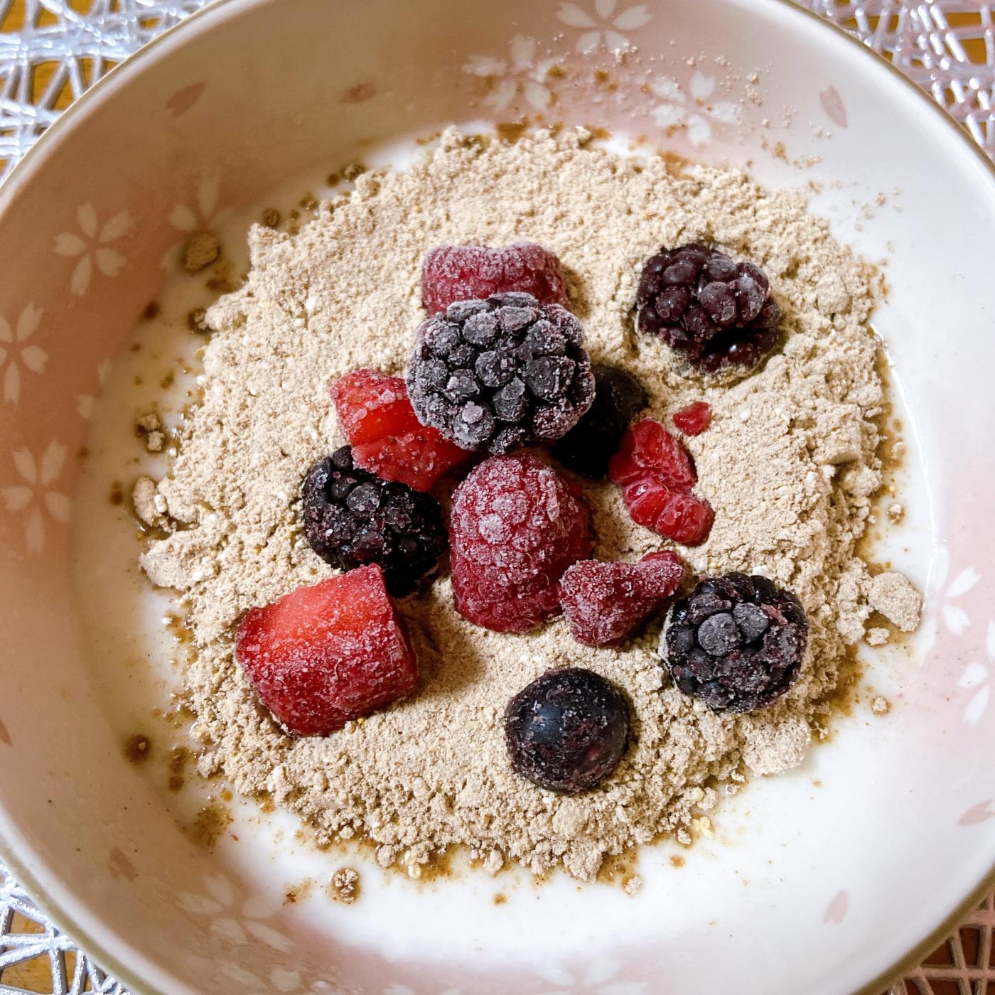 食べ方の注意点としては、水やドリンクに割ったら味も食効も劣れるそうで、必ず豆乳や牛乳で等で割ることを推奨されていました(o^^o)