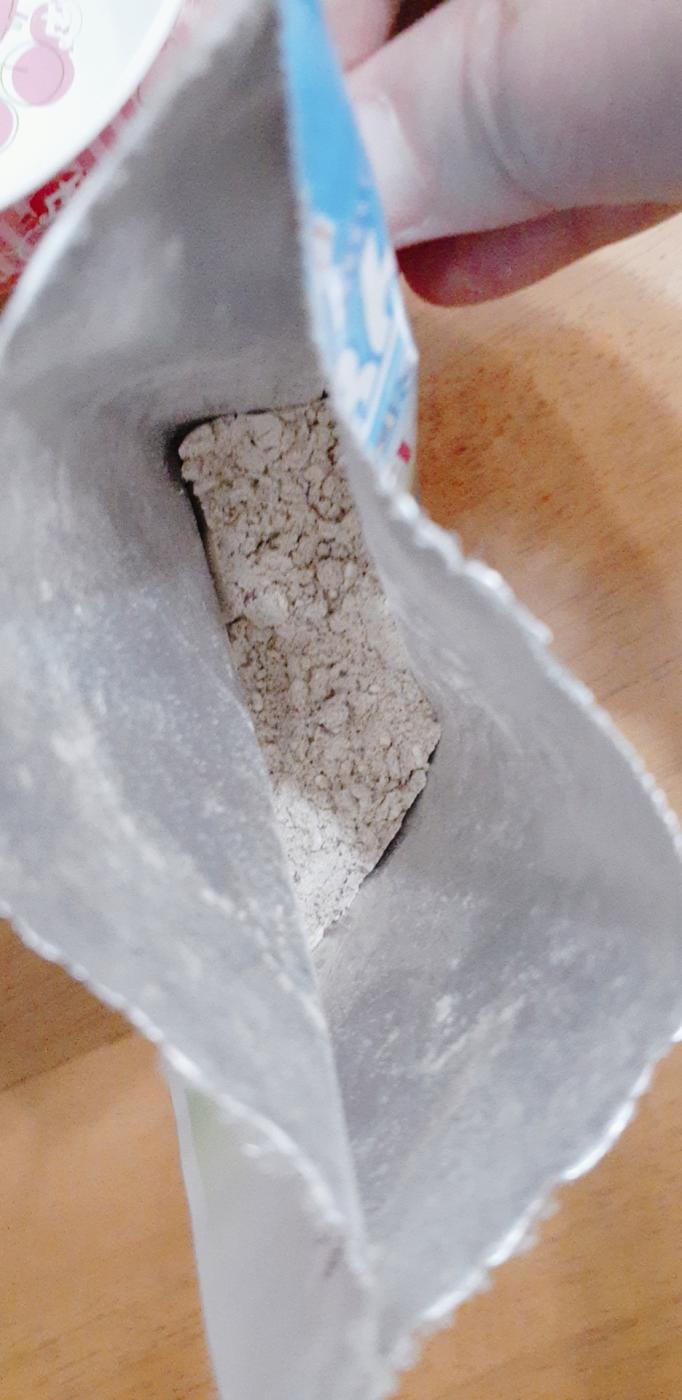 よく混ぜると溶けました。スプーンですくうと粒々が見えます。