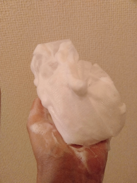 泡を顔につけてみましたが、垂れることもなく顔を優しく包み込むような泡ですね。顔を泡になじませてから、泡を洗い流した後、肌がツルツルしていていました。乾燥もなくしっとりしていて、嬉しかったです。