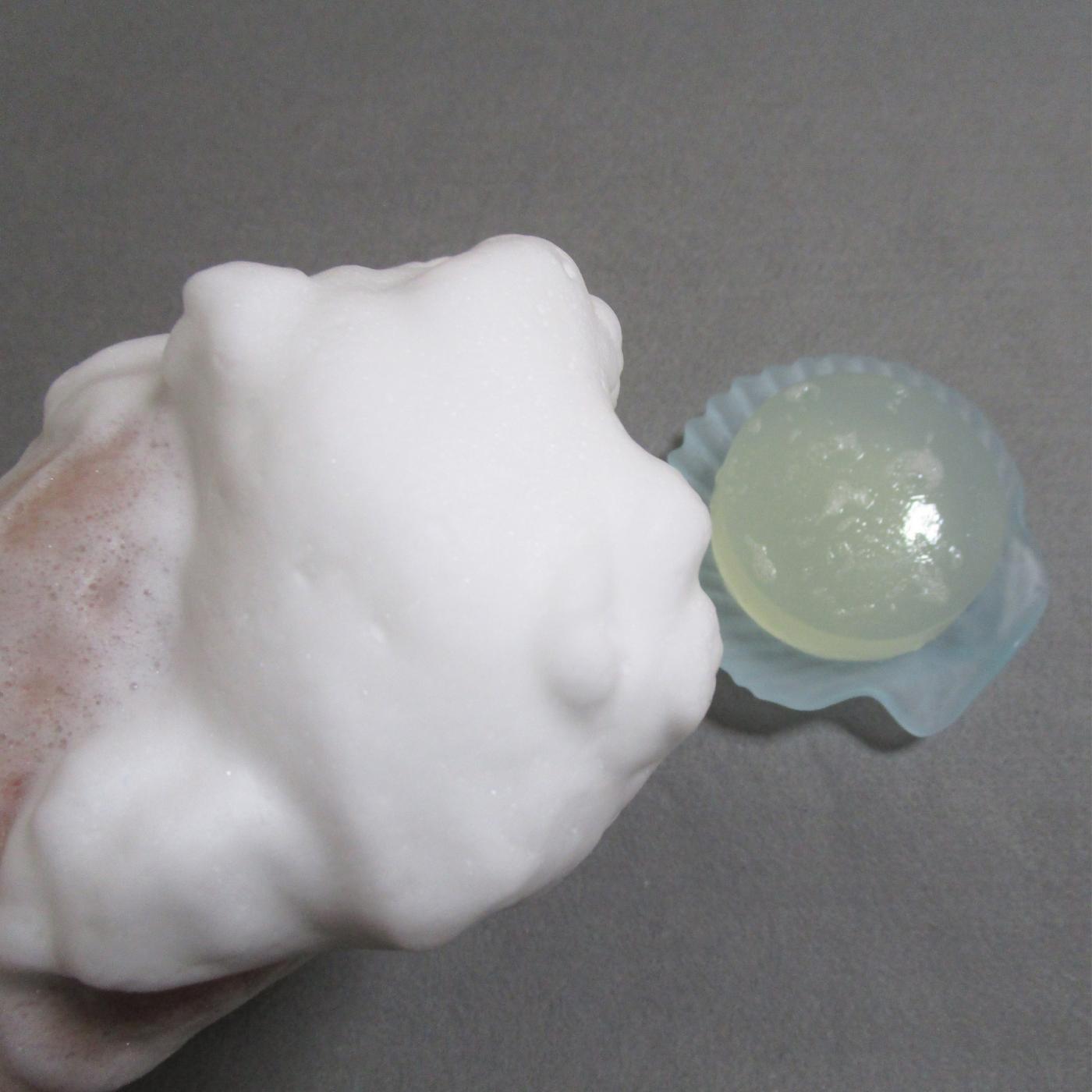 本当に少ない量で軽く泡立てネットでこするだけで簡単に濃密な泡ができます。