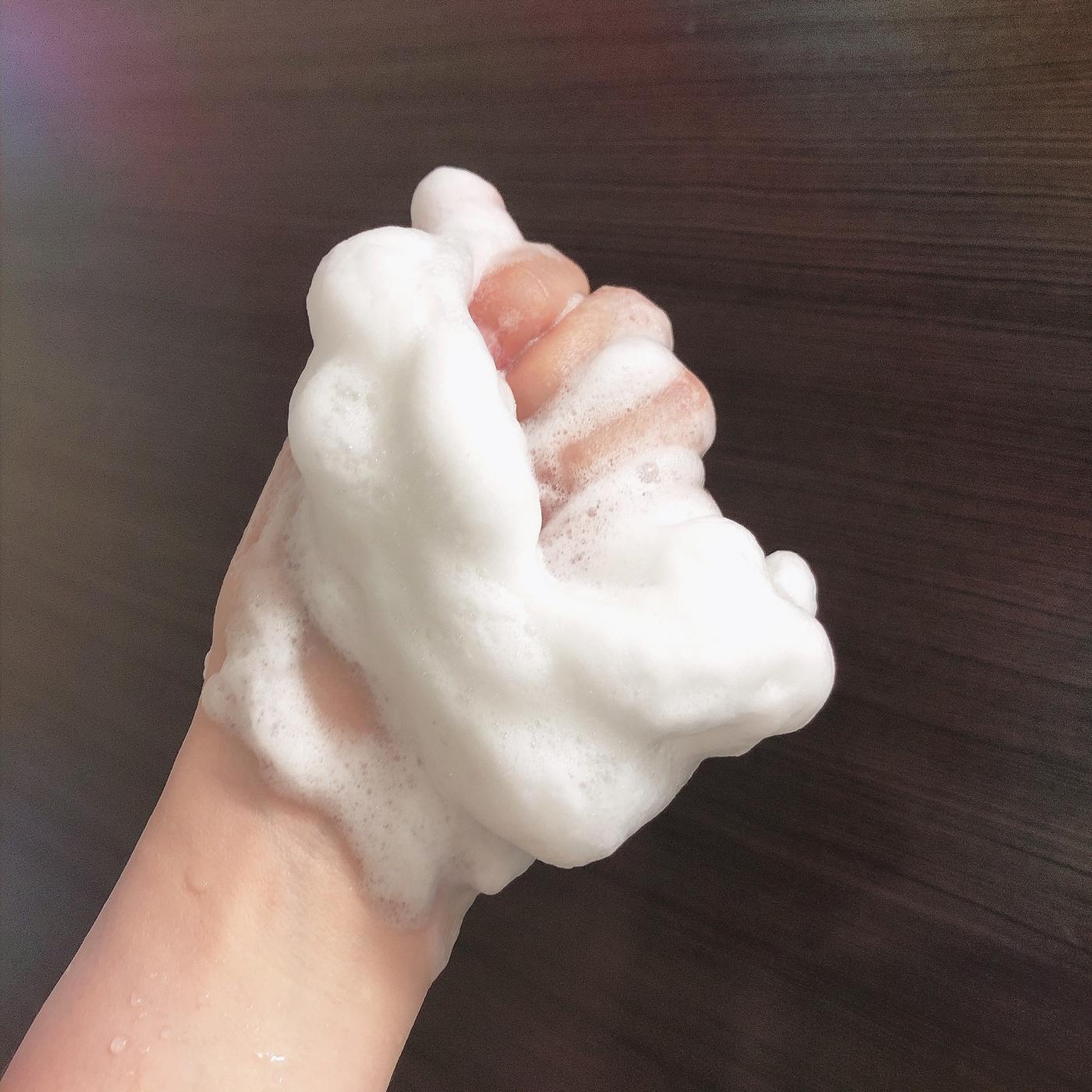 肌あたりはもこもこ、しっとりしており、メイクの落ち残りや余分な皮脂がしっかり洗い流せました。