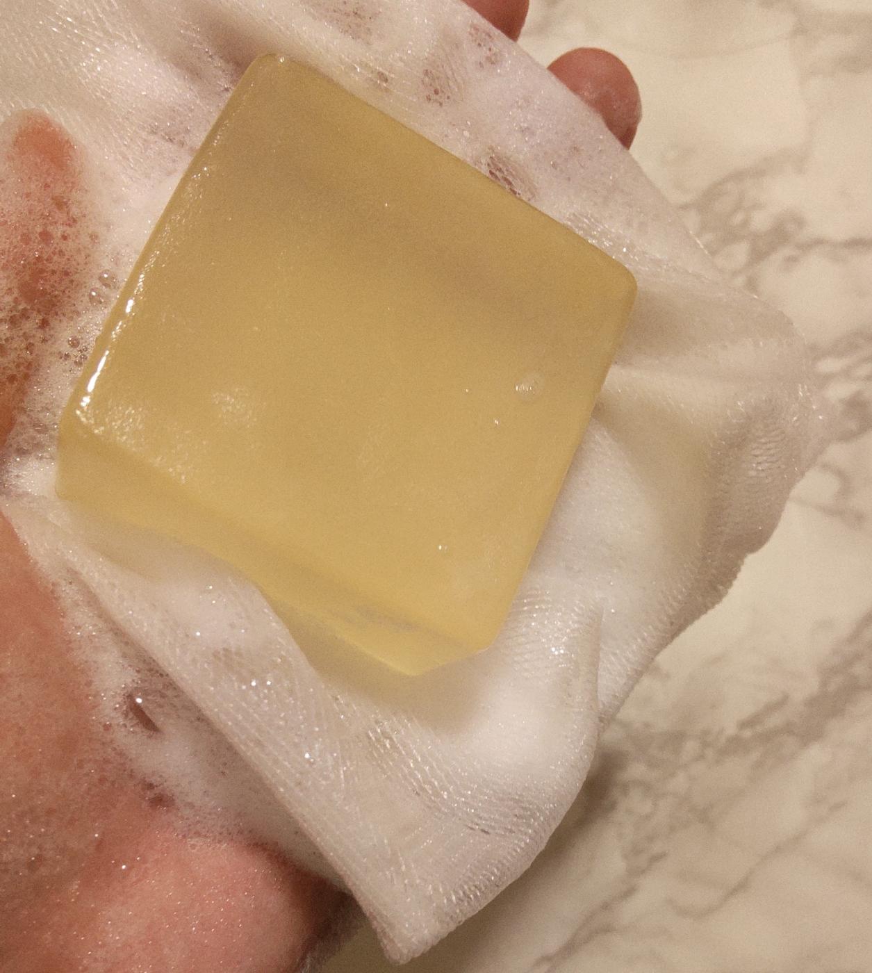 四角い石鹸と泡立てネットが入っています!