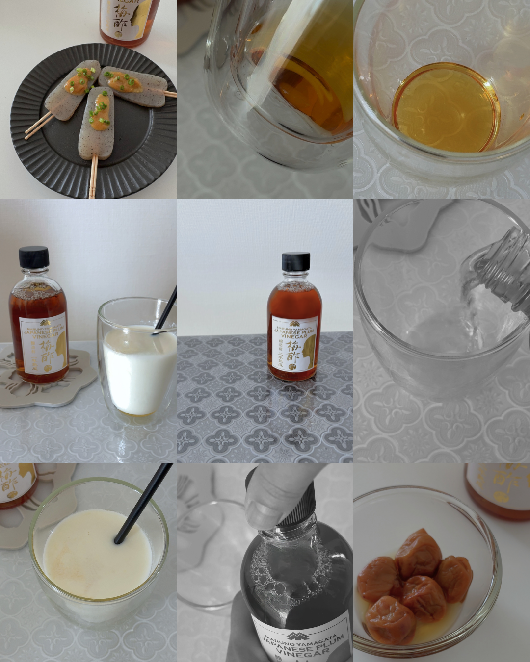 今回は梅酢・牛乳・ハチミツでさっぱりドリンク、ほんのり梅が香るこんにゃく田楽、市販の梅干しに梅酢の香りをプラスした“カスタム梅干し”を作ってみました◎