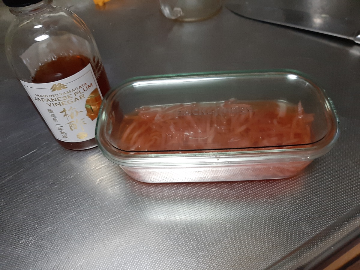自宅で紅ショウガを作りたくて、梅酢探していました。
