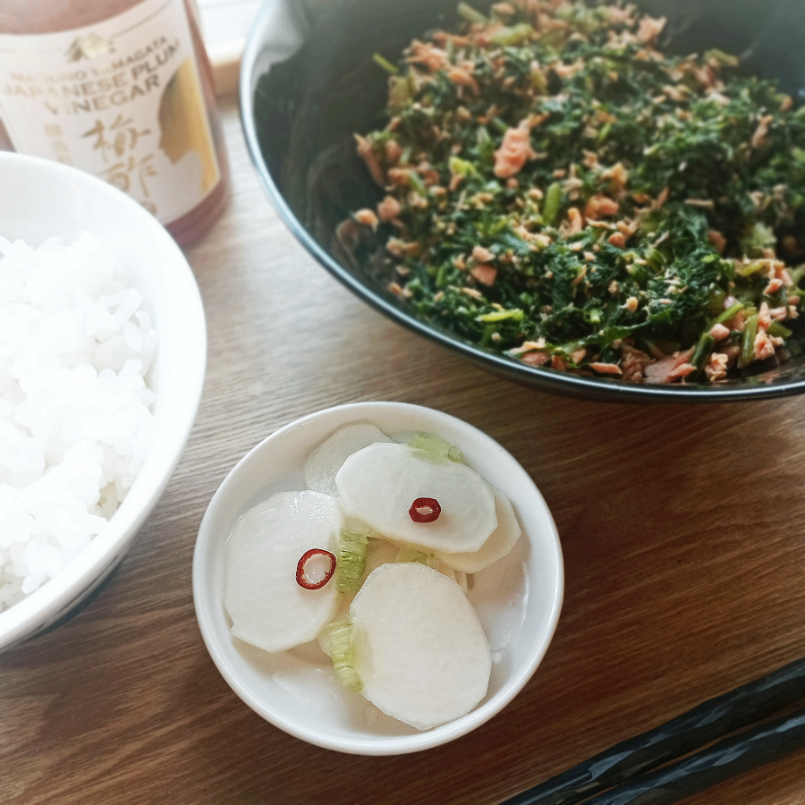 小カブが新鮮なので甘味があって美味しいです。ほんのり梅の風味を感じます。酸味がまろやかなので、