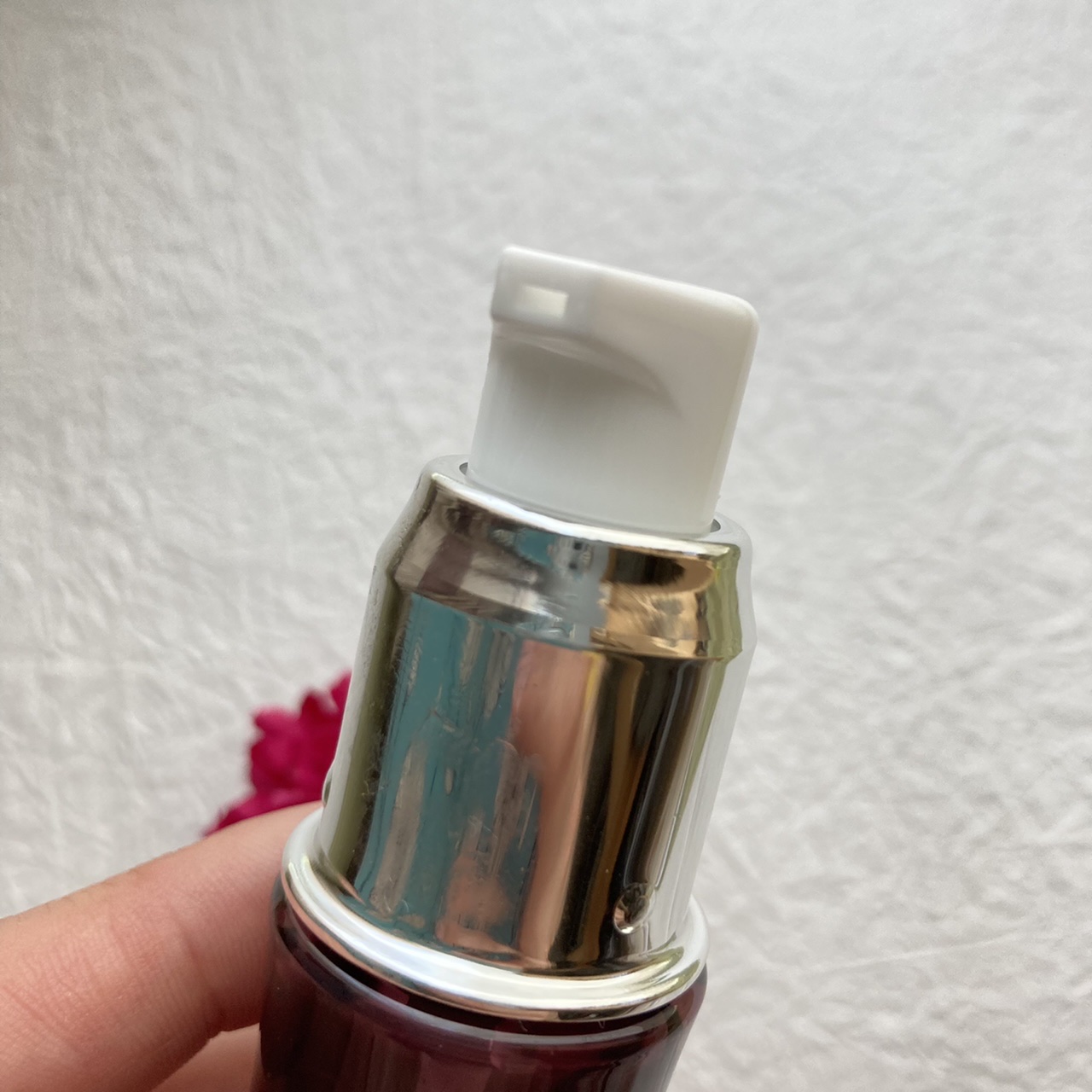 手のひらサイズの小さなボトルでプッシュしやすい形です。化粧水の後1〜2プッシュを取り、手のひらに広げお顔全体に広げます。目元や目尻は重ね付けをするとさらに良いそうですよ。