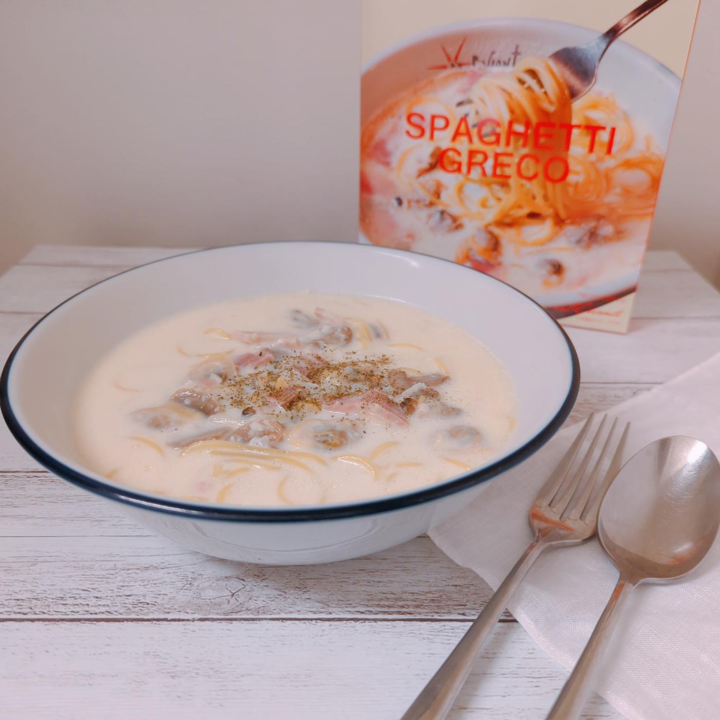 パスタソースは湯煎で約9分ほど、生スパゲティは約3分茹でて完成です❣️