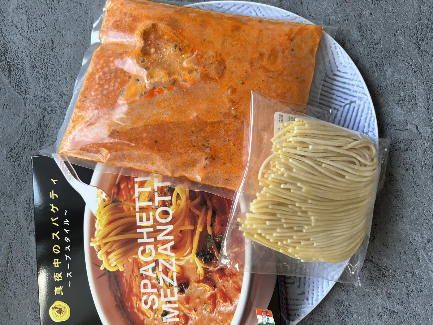 真夜中のスパゲティ(少し辛めのガーリックトマトスープ仕立て冷凍パスタソース)+冷凍生スパゲティセット