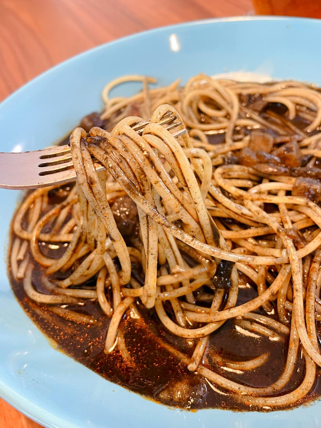 濃いガーリックの味ととイカスミの味がマッチしてめちゃくちゃ美味しい🤤✨