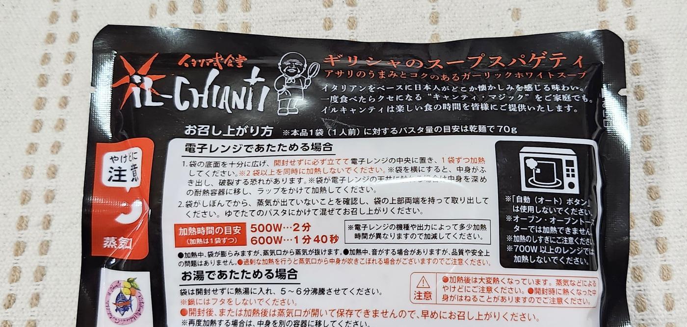 コエタスのモニターキャンペーンで頂いたイルキャンティ ギリシャのスープスパゲティ レトルトパスタソ...