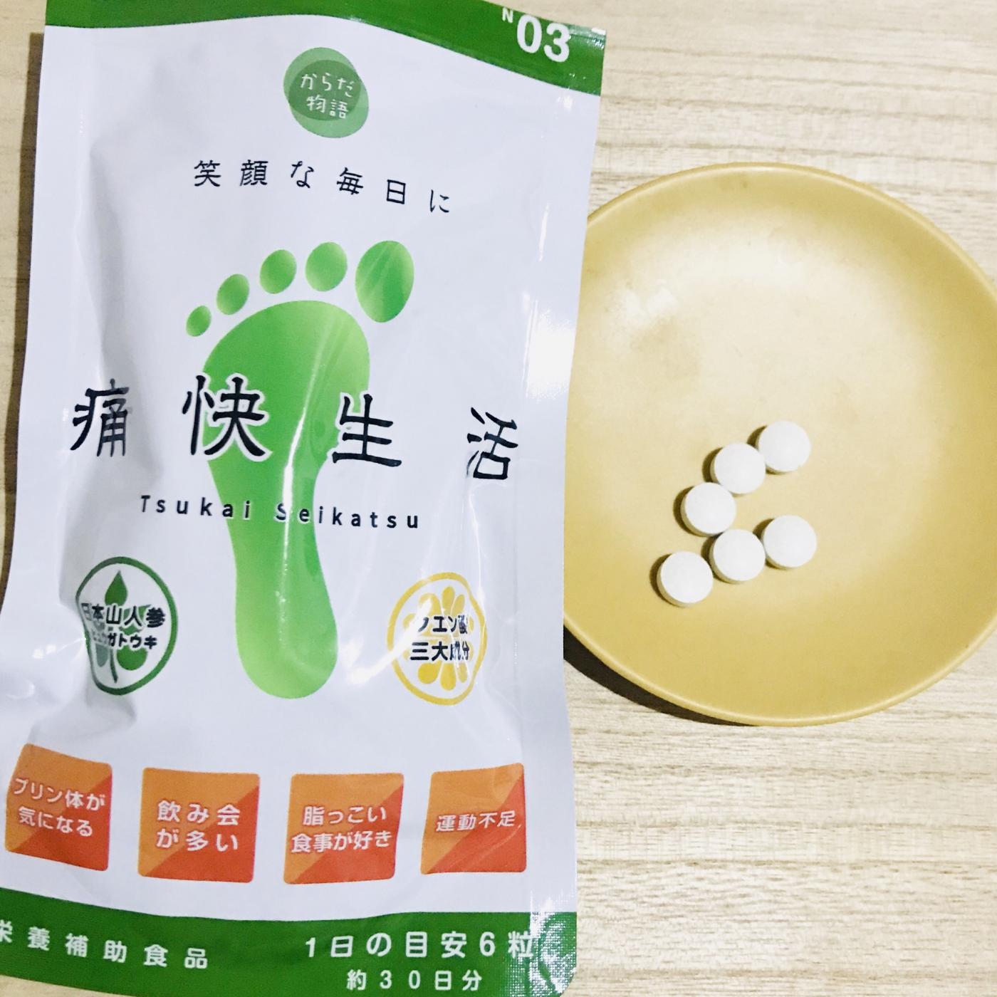 栄養補助食品の痛快生活を試してます♪ 1日6粒を目安に1回に3粒を水やお湯で飲むだけです!空腹時はさけ...