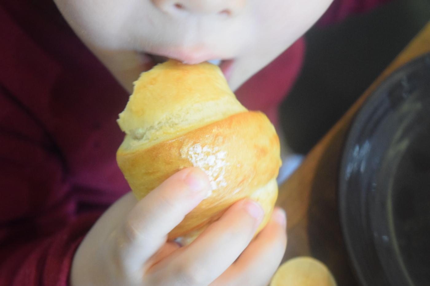 カラマツベーカリーの塩パンは、イーストを使っていません。放牧されておいしい緑の草をたくさん食べて育ったストレスフリーな乳牛から作られる貴重なグラスフェッドバター100%使い、英国マイルドシーソルトをトッピングされていて、存在感がありました。食べたら程よい塩味があり美味しかったです。普通のロールパンを想像していると、このどっしりした生地にびっくりするかもしれません。ずっしり重く、むちむちな感じで1つでお腹いっぱいになりました。今までに食べたことのない、塩パンでした。トースターでトーストすると、外はカリッと中はジュワッとなり、バターがジュワーッと出ていました。私は表示されていた分数では温かさが物足りず、少し食べてから残りを追加焼きしました。焼きすぎたかも、と思ったが、それがとてもカリカリになり美味しかったです!お好みで追加焼きしてみると、自分の好みが発見できるかもしれません♡♡♡安心安全なパンが冷凍であるので、子どものおやつにもぴったりだと思います。冷凍保存でき、美味しいパンがすぐ食べれるので常備するのにおすすめです♡