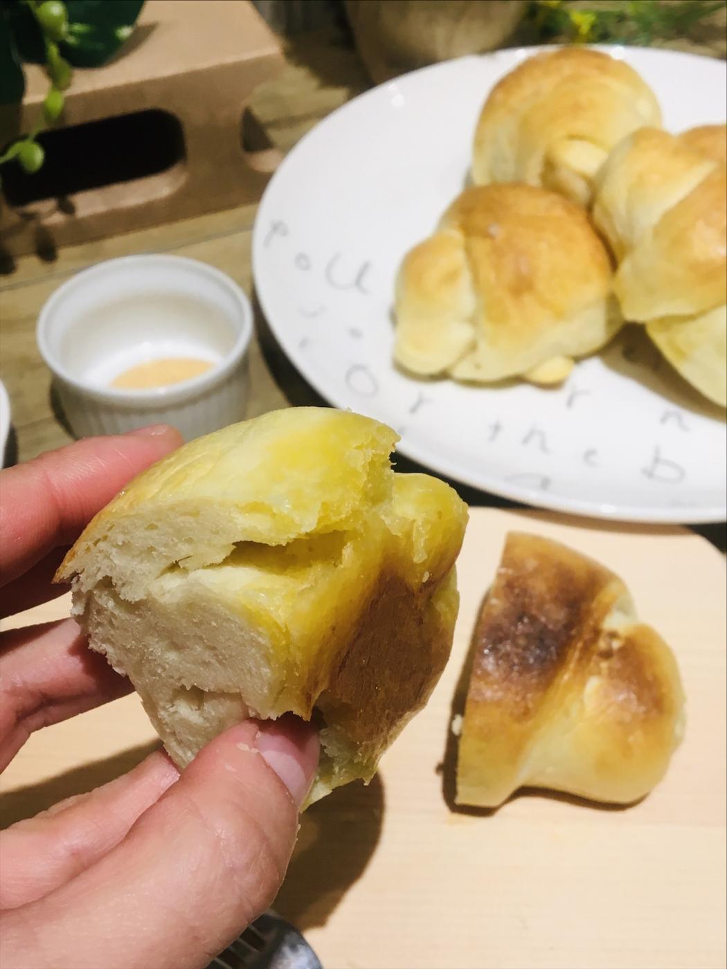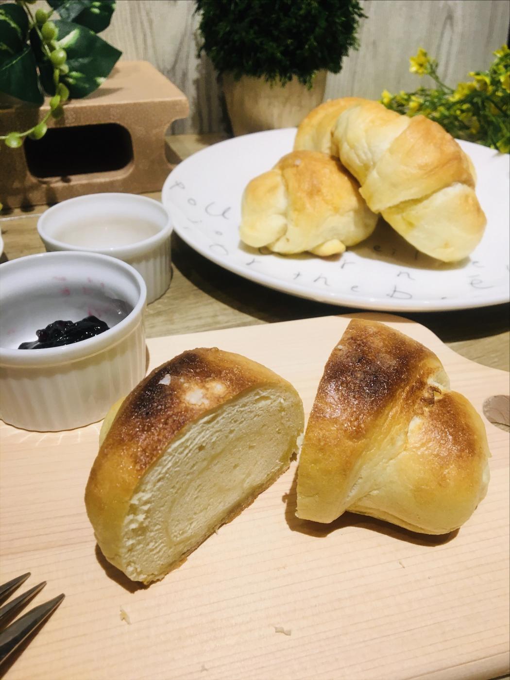 真ん中は相変わらず密度が凄いっ!!1番下の部分はバターがとろけてしーっとりタルト生地のよう。1つでこれだけの重量感と色々な食感とお味が楽しめるので、もう何もつけずこれだけで本当に満足する程美味しいです。ジャムとかつけてしまうのが勿体ない位。私は塩が好きなので、追い塩&オリーブオイルで頂きましたが、最高です。もう普通のパンが物凄く味気なく感じてしまいそう。。塩パン、また食べたいです!