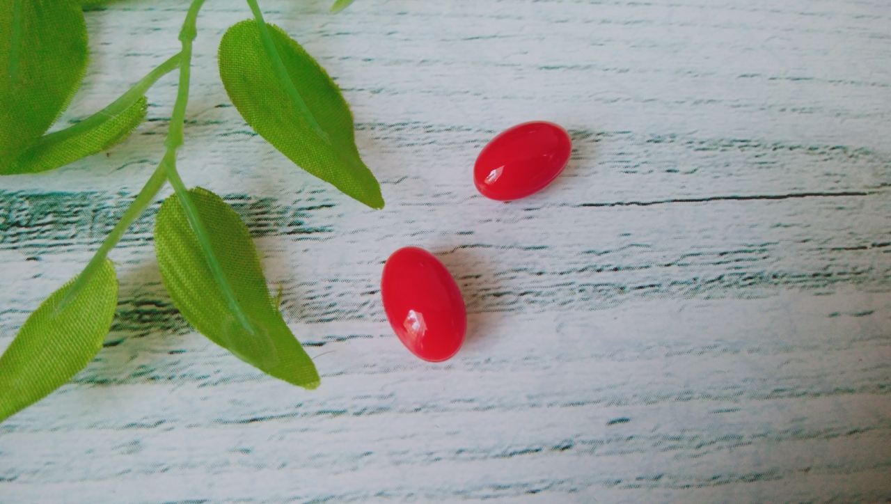 サプリメントの粒は赤い粒で、本当に宝石のような感じの色です。