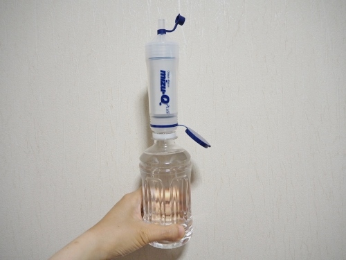 こちらの浄水器をペットボトルに取り付けるだけで