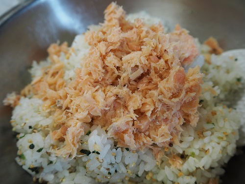 瓶いっぱいに詰まっている感じですが、出してみるとふんわりした鮭フレーク。