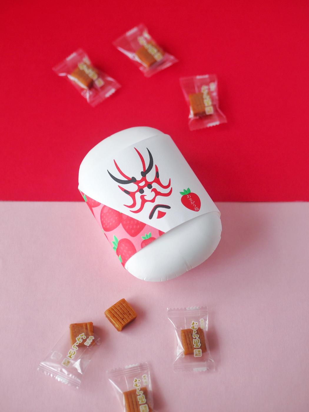 隈取りデザインのパッケージは和の雰囲気が漂い、手土産や贈り物としても喜ばれる仕上がりです。自宅用にも贈答用にも常備したくなる特別感のある一品でした。