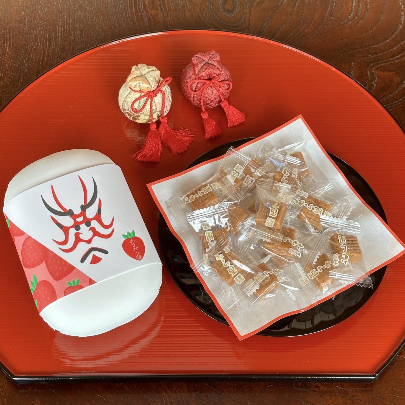 隈取りのパッケージが目を惹く、半生キャラメル「あまおう苺」