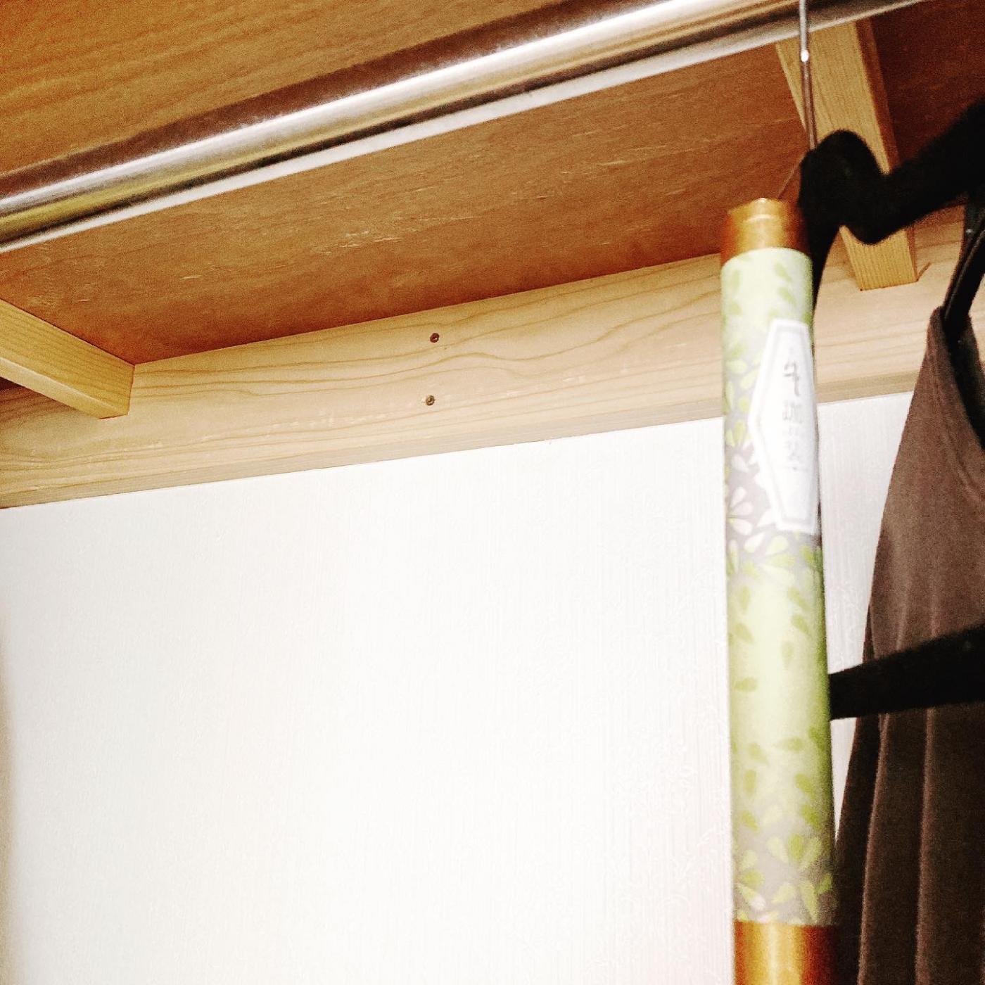 少し香りが落ち着いたころにクローゼットへ移動させて上手く吊るせないのでハンガーに掛けておきました