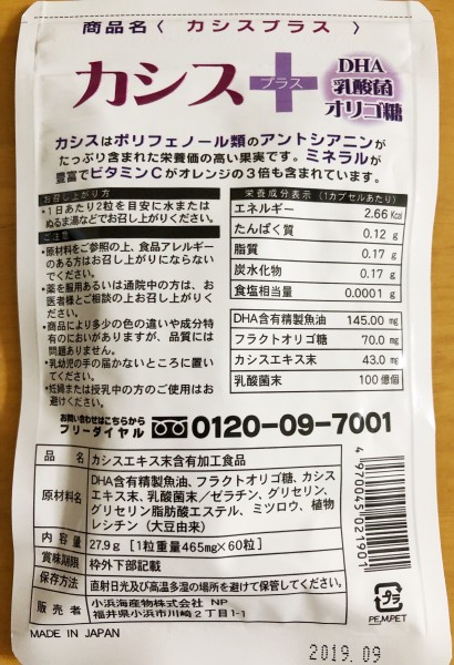 小浜海産物株式会社 様の「眼精疲労 カシスプラス(健康補助食品)」をお試しさせて頂きました。