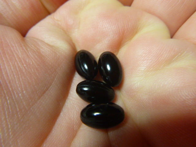袋を開けてみますと、黒い無臭の粒が60粒入っており、一日あたり2粒が目安なのでだいたい一か月分がパックされているということになります。粒のサイズも小さいですし誰にとっても飲みやすいものだと思います。