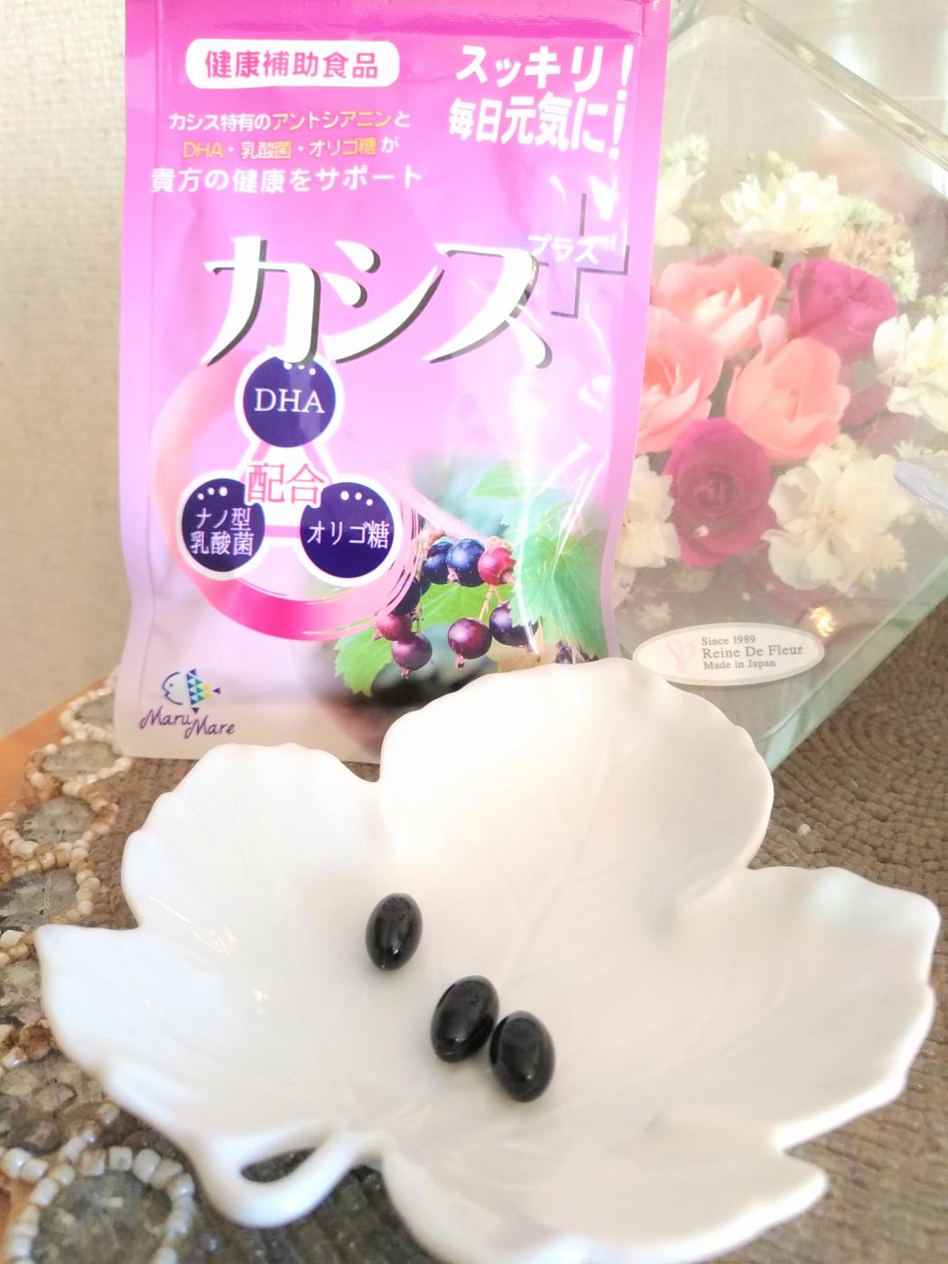 そのカシスエキス粉末にDHA,乳酸菌、オリゴ糖を加えた、飲みやすいカプセル錠の健康補助食品です。