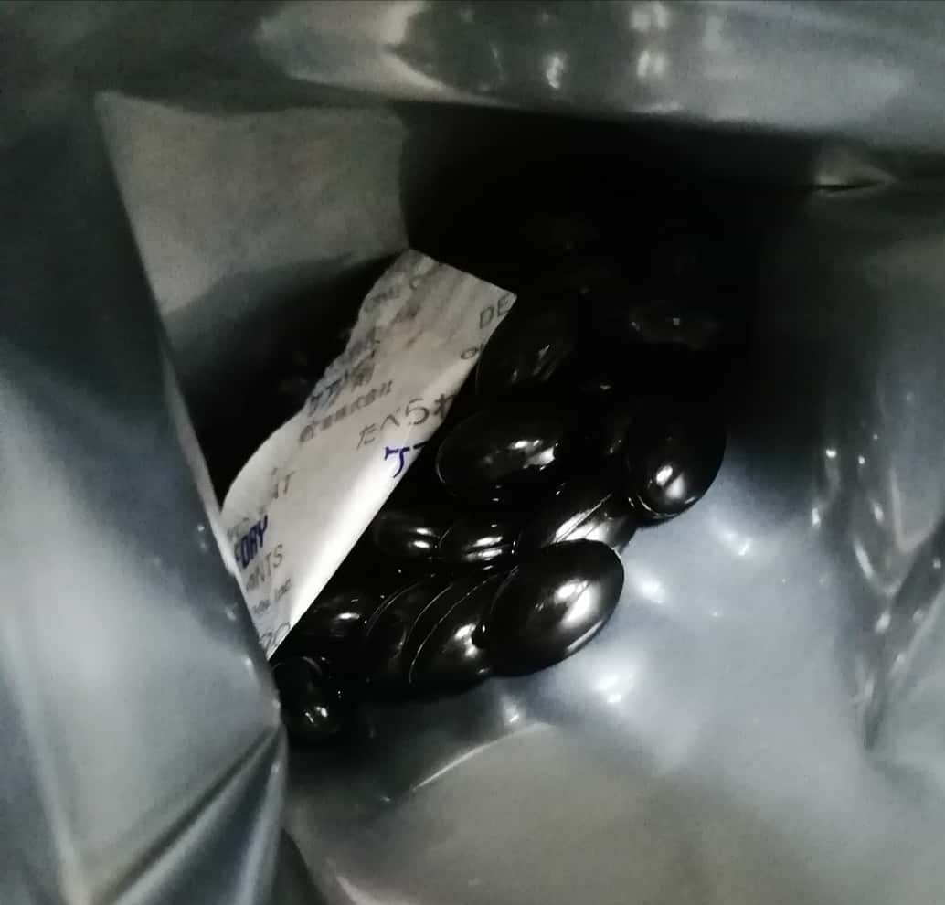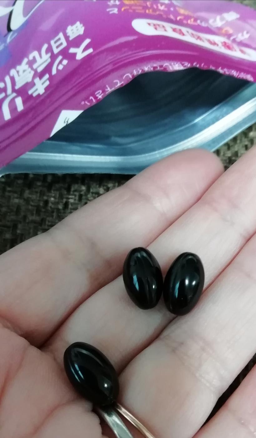 眼精疲労 カシスプラス(健康補助食品)を開けてみると、黒いカプセルが入っていました