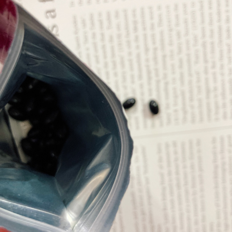1袋は60粒入です。中身はソフトカプセルで大きさとしては小さいほうなので、飲みやすいと感じました。