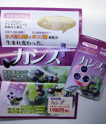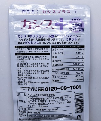 「カシスプラス」は黒っぽい色をしたカプセル状のサプリメントで、1日2粒を水又はぬるま湯などで飲みます。