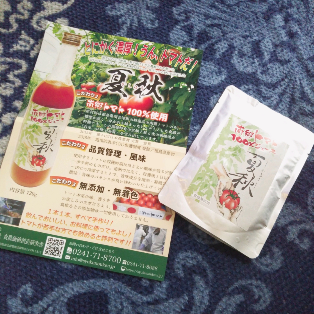 季節を味わうトマトジュース南郷トマト100%ジュース。日本一の味と品質と称される南郷トマトを使用。夏秋に使用している「南郷トマト」は、 福島県南会津地域特有の昼夜の気温差が大きい気候と生産者の努力が生んだ、糖度が高く身が引き締まった甘みの強いトマト。追熟せず収穫後すぐに冷凍。だからこそ収穫直後の味と鮮度をそのままに甘みと酸味の適度なバランスの立体感のある最高のトマトの味をジュースにすることができた商品。夏秋は、手作業で丁寧にアク取りをすることで、青臭さをしっかりと取り除いているので、トマトジュースが苦手という人にもお勧めできる商品。180mlのパウチタイプのお試しです。飲み切りやすいサイズです。コップに注ぐと赤ではなくオレンジ。ドロっと感はあるものの香りも味もトマトそのものでびっくり。青臭さが一切なく、何も混ざっていないからすごく美味しい。そして甘さもある。すごく飲みやすいです。美味しい。後味もいいし、トマトの味が強いからトマト好きにはクセになるジュース。市販のトマト100%ジュースとは全然違います。朝食時にもぴったりだし、子供のおやつタイムにも最適。クセもないので贅沢に料理にも合いそう。スープなど作ってみたいのでリピしたい商品。健康にも美容にもすごくおススメです。