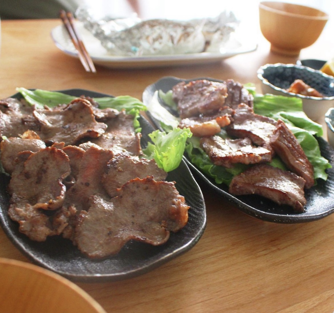 最初は定食風に1人ずつお皿に盛ろうかなと思ってたけど、もう今日は牛タンパーティーにしよう🥳と、全部焼いて食べくらべしながら楽しみました✨✨