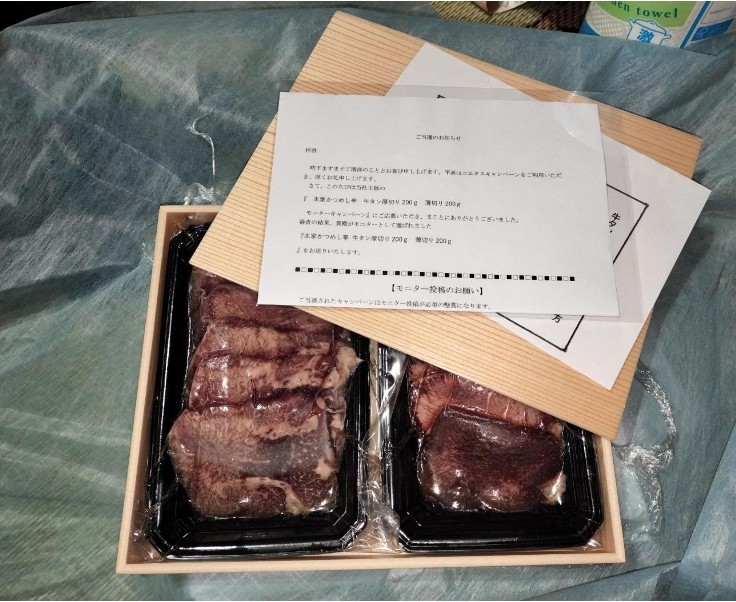 コエタス様のモニターキャンペーンで当選した「本家かつめし亭 牛タン 厚切り・薄切りセット」について...